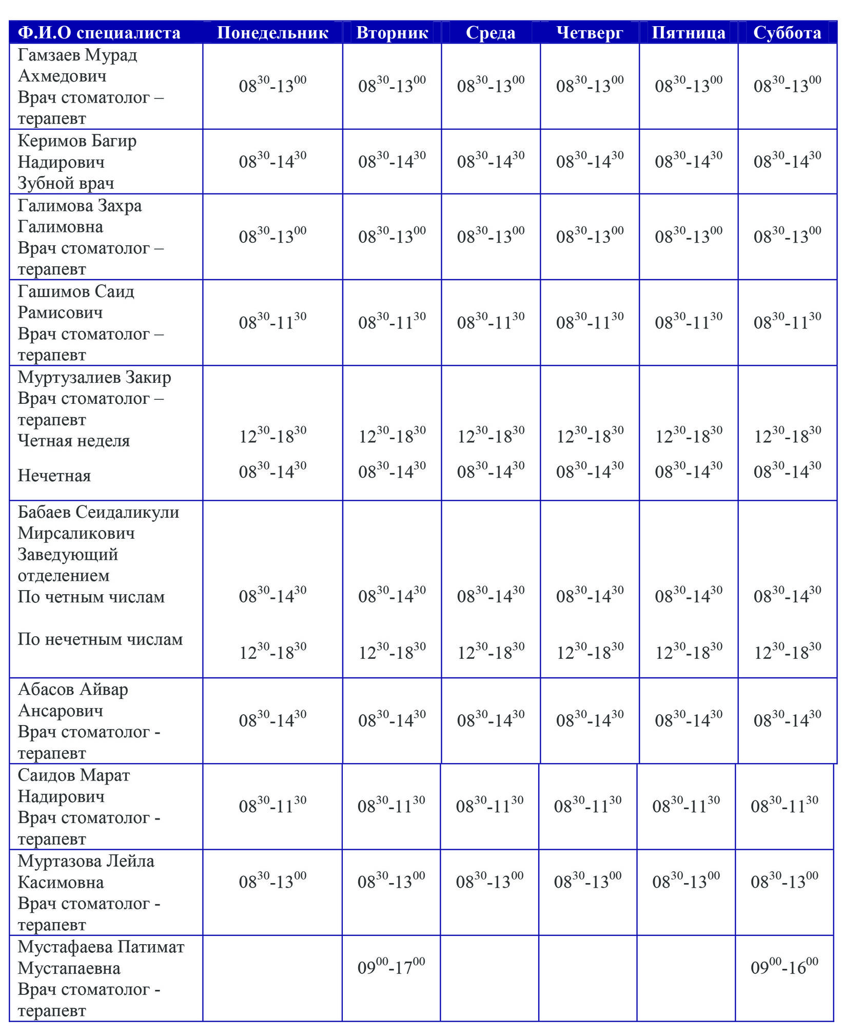 График работы врачей